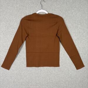 OQQ Shirt Womens Medium Brown Ribbed Basic Yoga Tight Long Sleeve Stretch Layer Crew Neck Active Performance neutral