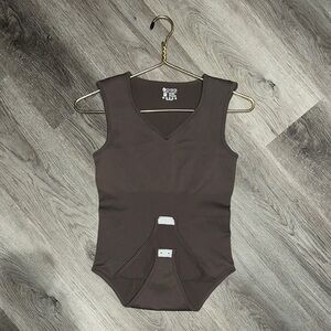 OQQ Women's 1 Piece Sexy Ribbed V Neck Sleeveless Tank Top BodySuit. Size Medium Color Brown SKU002