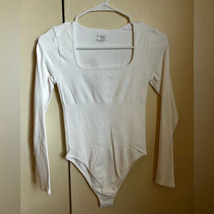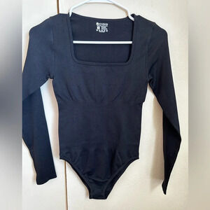 OQQ Women's 2 Piece Bodysuits Sexy Ribbed Square Neck Long Sleeve Bodysuits shape wear.
