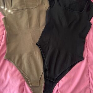 OQQ Women's Black and Brown Square Neck body suits. Never worn. Waist slimming.