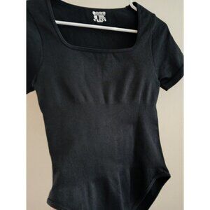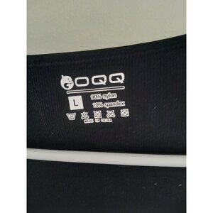OQQ Womens L Black Ribbed Square Neck Bodysuit Short Sleeve Top Leotard Jumpsuit