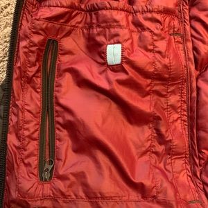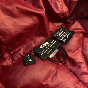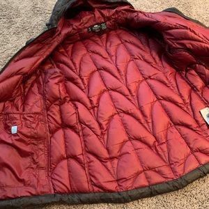 Great condition women’s medium outdoor research down hoodie. Brown with red lining.