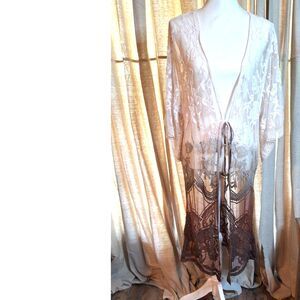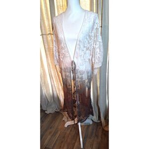 ORAGAMI Floral Lace Brown to Cream BOHO Western Cardigan One Size