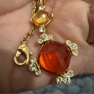 🧡 ORANGE & AMBER GEM DROP NECKLACE – GOLD ROPE CHAIN – 19” – FOR WOMEN