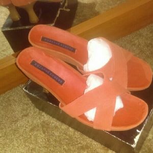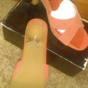 Suede in color. Not to high of a heel. Platform Comfort. New!!! Never worn " GREAT DEAL"
