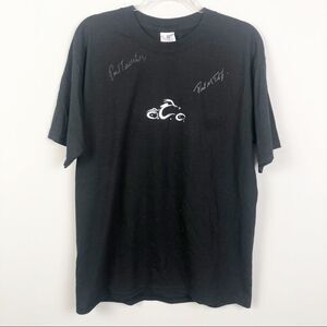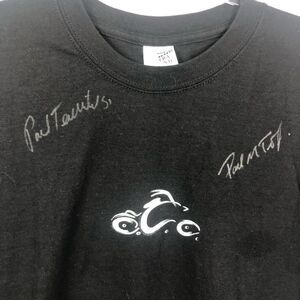 Awesome black short sleeve Orange County Choppers tee with autographs by Paul Sr and Paul Jr!! Small darker spot as shown. Otherwise good preowned condition. Size Large.