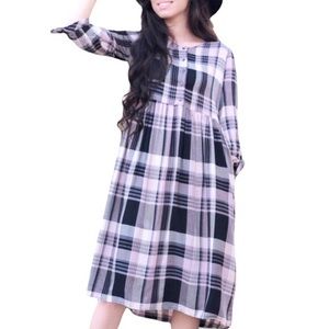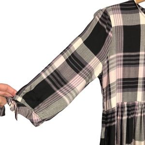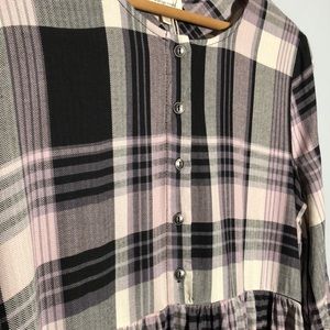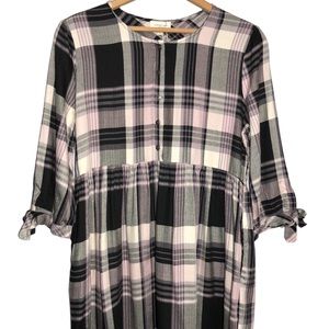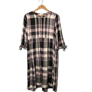 ORANGE CREEK | Black and Lavender Plaid Henley Midi Prairie Dress size Medium