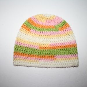 This vibrant winter beanie is crocheted in cheerful orange and green yarns, offering a soft and cozy fit for preschoolers aged 3–5. Handmade with care, it’s perfect for chilly strolls, boutique gifting, or playful photo styling.