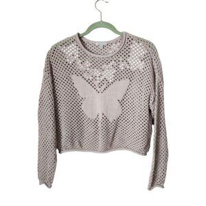 ORANGE KISS Y2K Butterfly crop sheer open knit sweater in cream size M