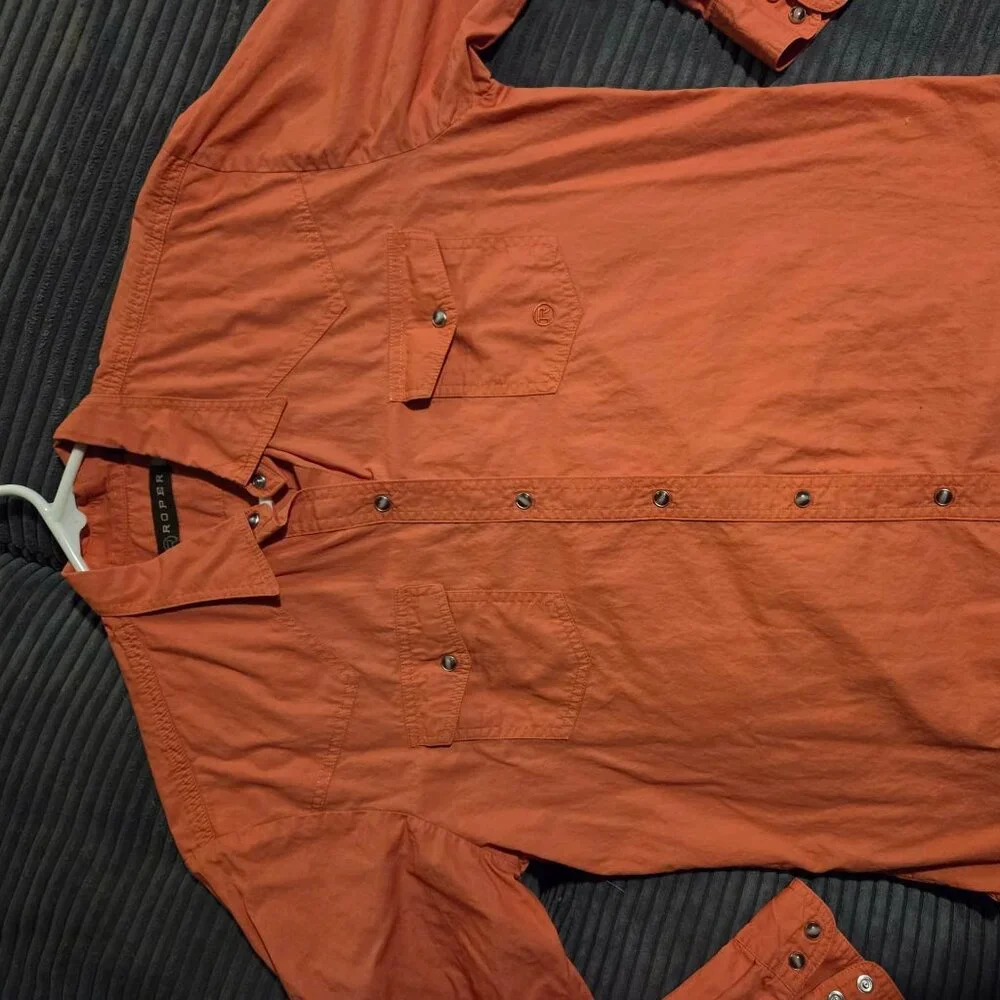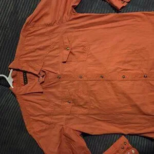 Orange show shirt by Roper. Only worn 3-4 times for horse shows. Always dry cleaned. Size L.