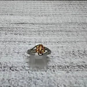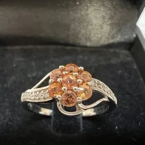Beautiful Orange Sapphire, White Zircon Flower Ring
