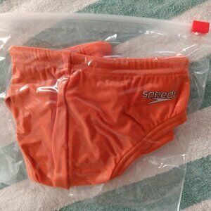 (*) ORANGE SPEEDO SWIM BRIEF, SIZE 30", 2" Side Seam (Pre-Owned)