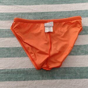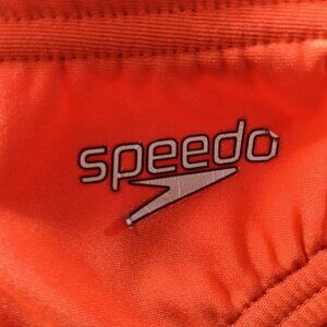 PRE-OWNED ORANGE SPEEDO SWIM BRIEF, SIZE 30", WITH 2" SIDE SEAMS. WHITE SPEEDO LOGO ON FRONT HIP. SUIT HAS AN INTERNAL DRAWSTRING CLOSURE, AND FRONT AND REAR CENTER SEAMS PROVIDING A SLEEK LOOK AND SECURE FIT. GREAT SUIT FOR THE POOL OR BEACH. Suit is really like new and was only worn a few times, but never in the pool. Plenty of life remaining.