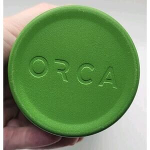 Authentic ORCA Coolers insulated tumbler in a solid green finish. Designed to keep drinks hot or cold for extended periods. Features a clear spill-resistant lid and durable construction.