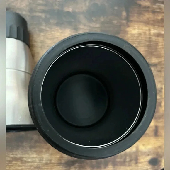 The tumbler unscrews in the middle and on top. Very good, used once, condition.