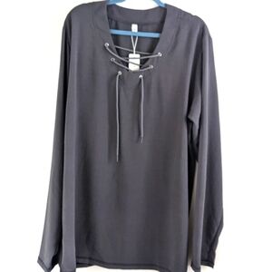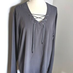 ORDER Plus Grey Lace Up Tunic Top V Neck 3X