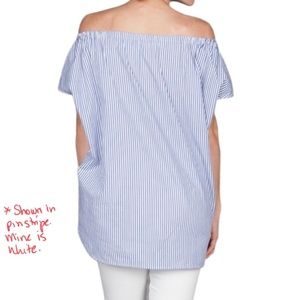 ORGANIC BY JOHN PATRICK BRIGHT WHITE COTTON POPLIN OFF THE SHOULDER TUNIC