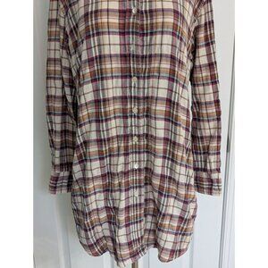 ORGANIC By John Patrick Tunic Button Down Shirt Dress Red Blue Plaid S Small