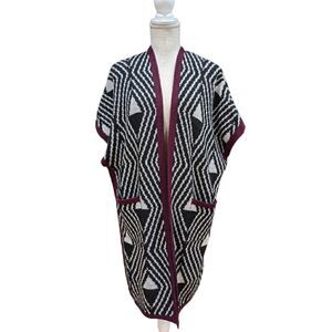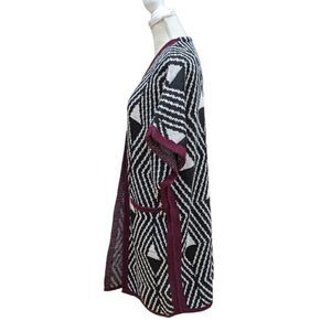 ORIANA Italy Geometric Print Wool Blend Open Front Sweater Cardigan Size S
