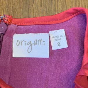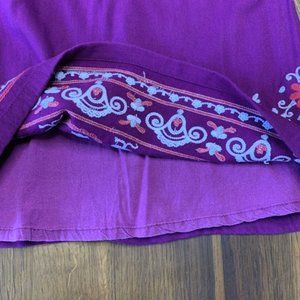 This stylish dress from Origami is adorable with floral embroidery. The color on is not as bright as the pics show and it's closest to the purple on the cu photos. I loved this high end dress from Australia. So cute on. There are no flaws that I can see.