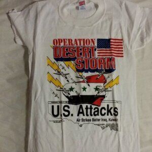 ORIGINAL 1991 DESERT STORM OIF I HEADLINE US ATTACKS T SHIRT