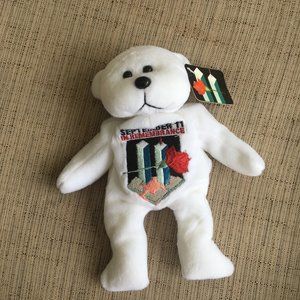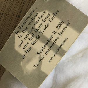 ORIGINAL 9/11 Twin Towers 2001 Plush Stuffed Bear, Purchased in 2001 and stored in bin since. Never played with. Has all original tags. Embroidered in front the twin towers with the words "September 11 In Remembrance"