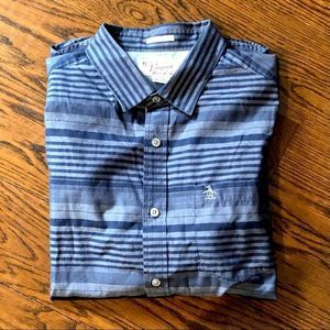 ORIGINAL PENGUIN Blue Striped Short Sleeve Button Down Shirt