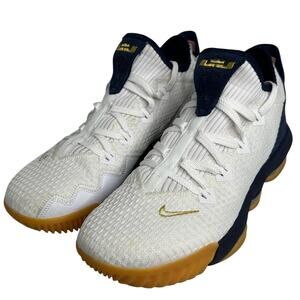 Released June 25th, 2019, the LeBron 16 Low 'USA' honors the Land of the Free with a navy-and-white colorway and hints of red inside the Zoom Air cushioning. The defining back heel panel reveals a lite American flag, and little details shine in gold to make sure the ultimate goal is never out of site. The knit upper helps ensure a breathable, flexible fit, and the step-in design with modified laces allows for different levels of tightness, according to preference.
