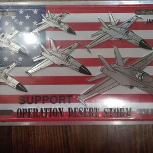 ORIGINAL vintage 1991 SUPPORT OPERATION DESERT STORM sign LICENSE PLATE jets