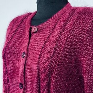 ORIS Super Fine Kid Mohair Italian Made Burgundy Womens Cardigan size 46-USA 10