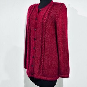 Italian made 70% superkid mohair women’s long cardigan sweater. Burgundy Maroon. Button up. European size 46, US 10 Pit to pit - 20” Excellent condition and extremely cozy!