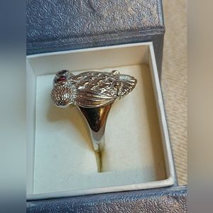 ORISSA RHODOLITE GARNET OWL RING IN PLATINUM OVER COPPER (0.30ctw) size 9