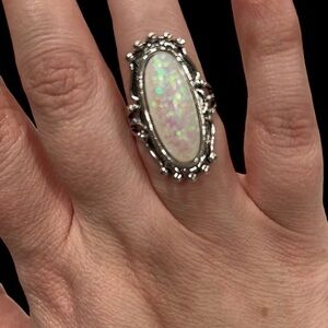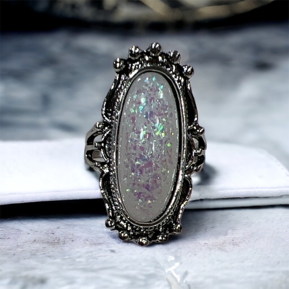 Large Oval Shaped Ring, Cocktail, Sagittarius Star Sign, October Birthstone, Faux Opal