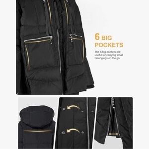 OROLAY Viral Women's Black 6 Pocket Puffer Coat with Orange Lining Size Large