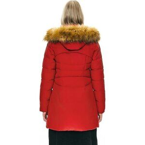 OROLAY sz M Qulited Puffer DUCK Down Jacket Red Winter coat parka faux fur hood