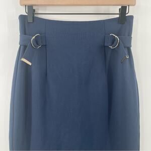 OROTON Skirt Size US 6 Blue Double Belted Luxury Designer Australia Office Work