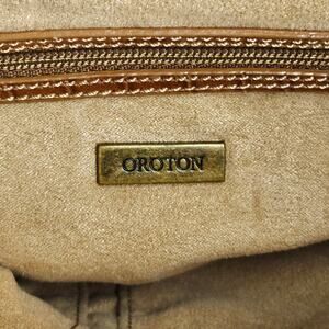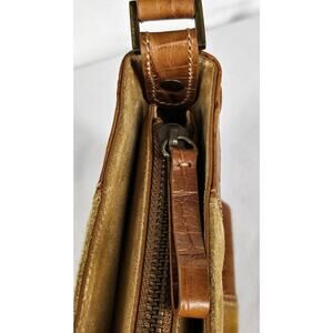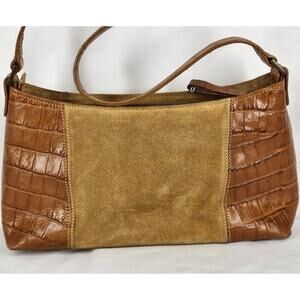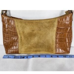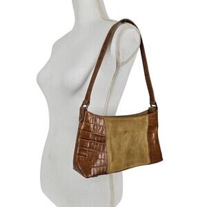 OROTON VINTAGE BROWN LEATHER AND SUEDE SHOULDER PURSE CROC PATTERN