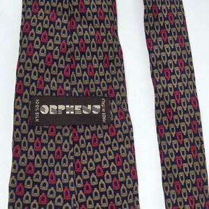 ORPHEUS ITALY SILK TIE BLACK GOLD RED EQUESTRIAN HORSE STIRRUPS 4.5" X 57"