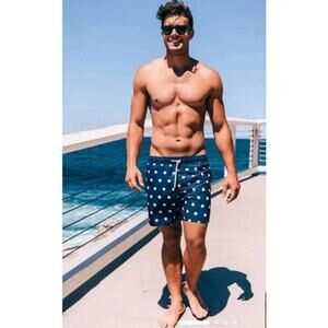 ORTC Mens Henley Swim Shorts Sz M Polka Dots Navy White AU Beach Resort Vacation