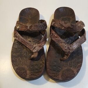 nice casual comfy sandals in great condition no size tag but full length insole is 10" witch fits 9