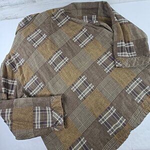 ORTON BROTHERS PATCHWORK BROWN FLANNEL SHIRT MEN'S SIZE LARGE