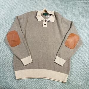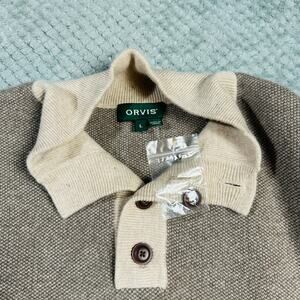ORVIS 100% Cashmere Beige/Brown/Bream Button Quarterzip NWOT Mens Sweater L