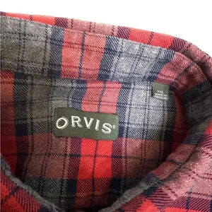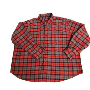 ORVIS 100% Cotton Red Gray Plaid Button Front Long Sleeve Flannel Men’s XXL