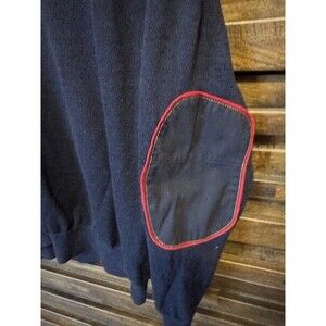 The ORVIS 1/4 ZIP 100% MERINO WOOL Upton Navy Sweater in Mens Size XL features a solid blue color with elbow patches, making it a stylish and high-quality addition to any man's wardrobe. Made from tight-knit 100% Merino wool, this sweater is designed for warmth and comfort. The sweater has a mock neck neckline, long sleeves, and a 1/4 zip style for easy wear and layering. Hand wash only to ensure the longevity of this premium garment, perfect for the modern man looking for both style and functionality.