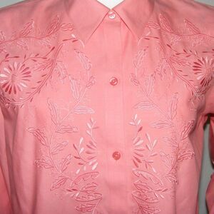 ORVIS Blouse, 16, Pink, Embroidered Front, Long sleeves, Button front