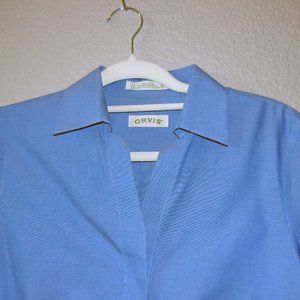ORVIS Blue Chambray Button Down Long Sleeve Wrinkle Free Shirt Size 6 Womans