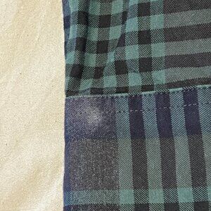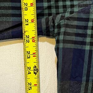 This is a classic men's button-down shirt from the Orvis brand in size M. It has a plaid pattern in green, long sleeves, a collared neckline with button-down style, and a Western outdoor theme. The shirt is made of cotton, featuring button accents and is machine washable. Ideal for travel, casual wear, work, or business attire, suitable for all seasons.