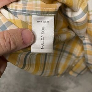 ORVIS Button Down Shirt Mens XL Yellow Plaid W/ White Grey Short Sleeve Cotton. Condition is Pre-owned - Excellent. Shipped with USPS Ground Advantage.
