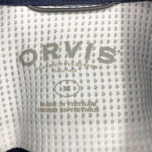Other: 100% Polyester, Collar Neck, Button up placket, Two double button closure chest pockets, Orvis brand tag on chest pocket, Orvis Since 1856 embossed buttons, Mesh lining on interior of neck region, Back latch hook along seam of collar