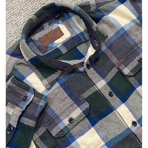ORVIS Flannel Shirt Men XL Plaid Blue Green Check Heavyweight Shacket Pocket